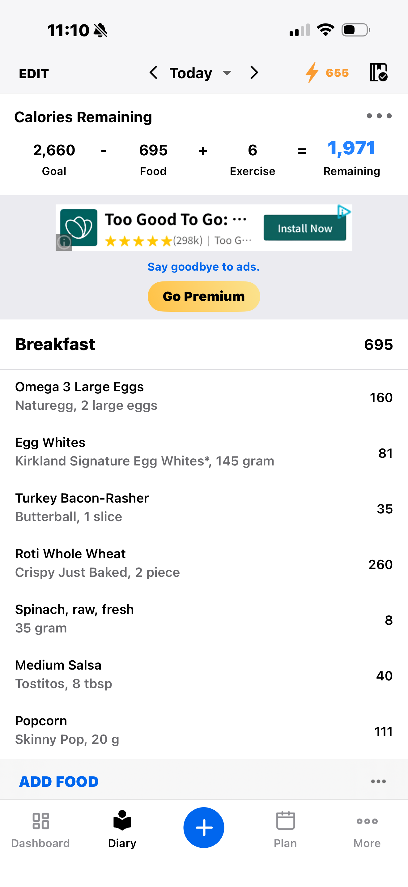Despite its depth and functionality, MyFitnessPal often presents too much information at once. The interface relies heavily on numbers and text, with limited visual guidance, making it difficult for users to quickly interpret their progress. Key interactions such as logging food or understanding calorie balance require effort to decode, especially for beginners. On top of this, cluttered layouts, excessive menu options, and intrusive ads create unnecessary friction during what should be a simple, repeatable daily task.