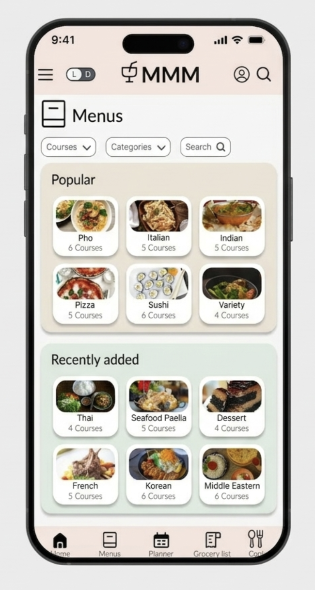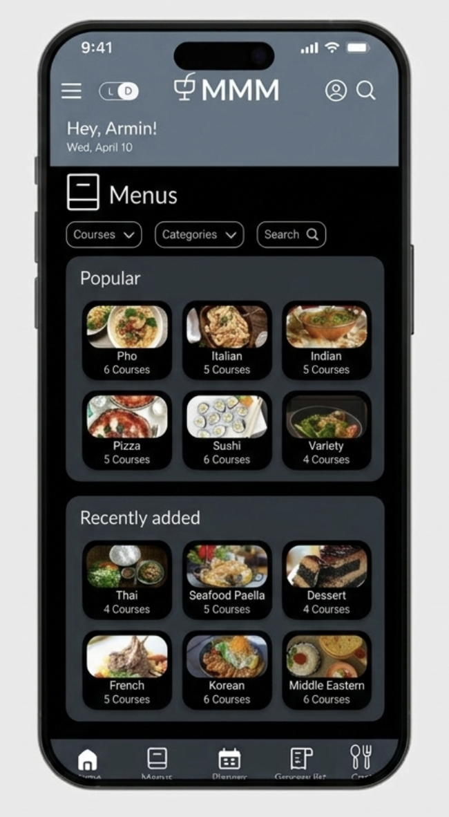 Major Meal Manager is a mobile app designed to guide users through the entire process of planning and preparing multi-course meals. From customizable menus and auto generated grocery lists to step-by-step video and written cooking instructions, the app provides a seamless end-to-end cooking experience.